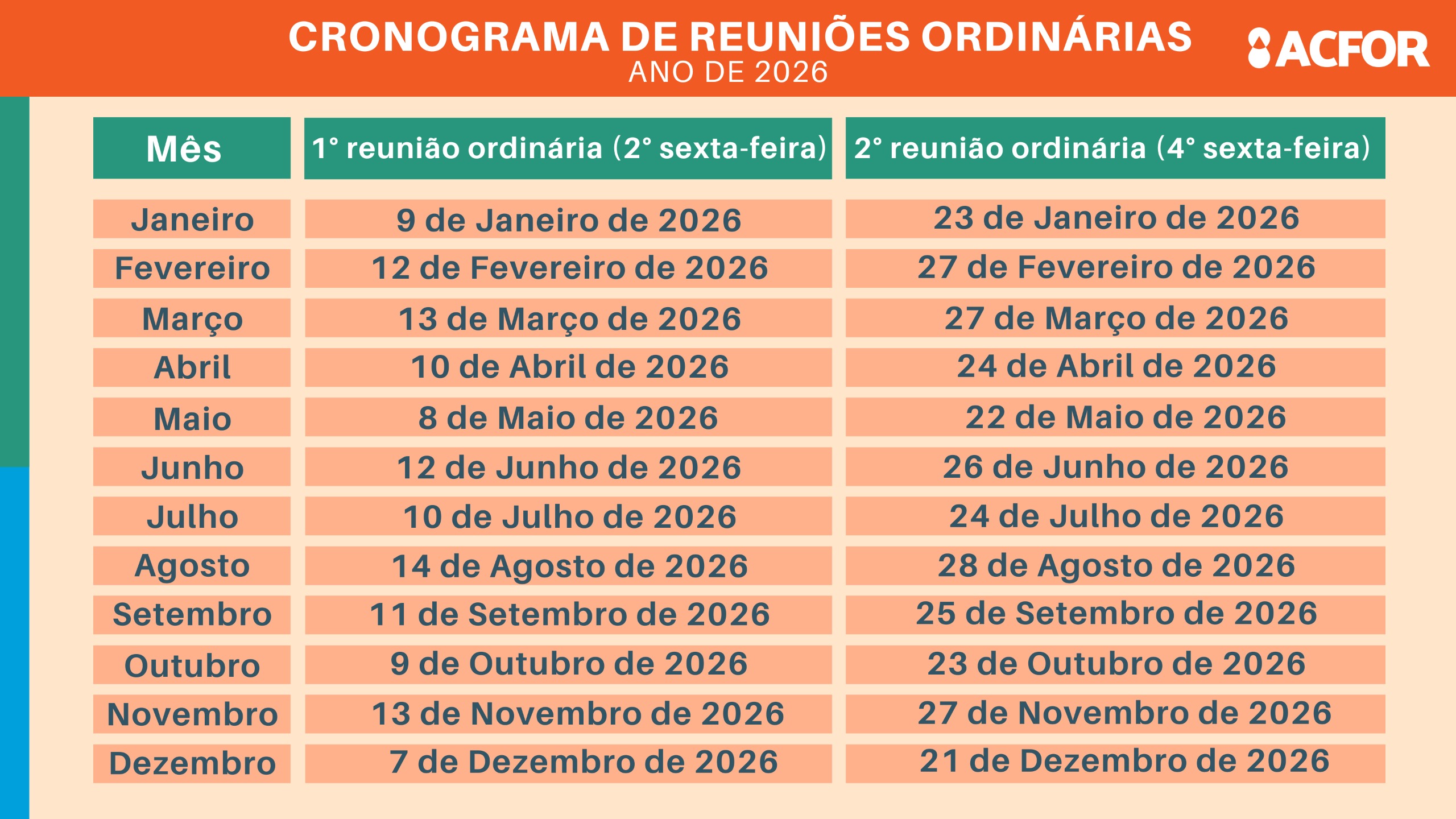 Clique aqui para conhecer o cronograma das Reuniões Ordinárias para o ano de 2026.